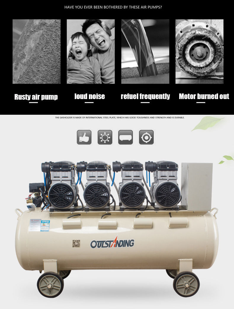 Air Compressor Ultra Quiet & Oil-Free 4-8hp Electric Air Compressor 50L-160L Steel Air Tank