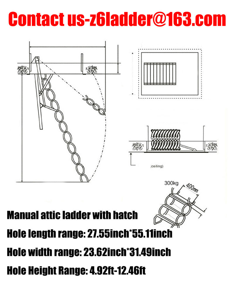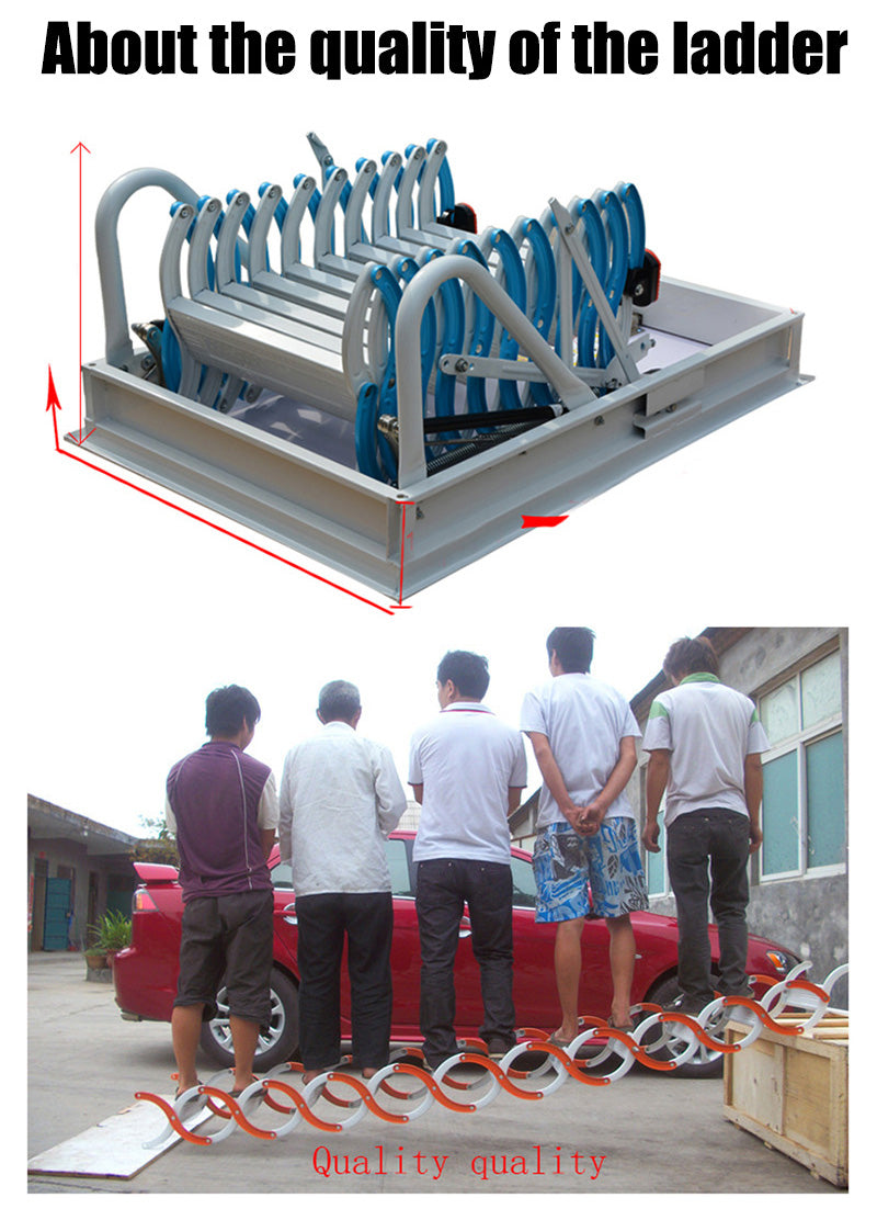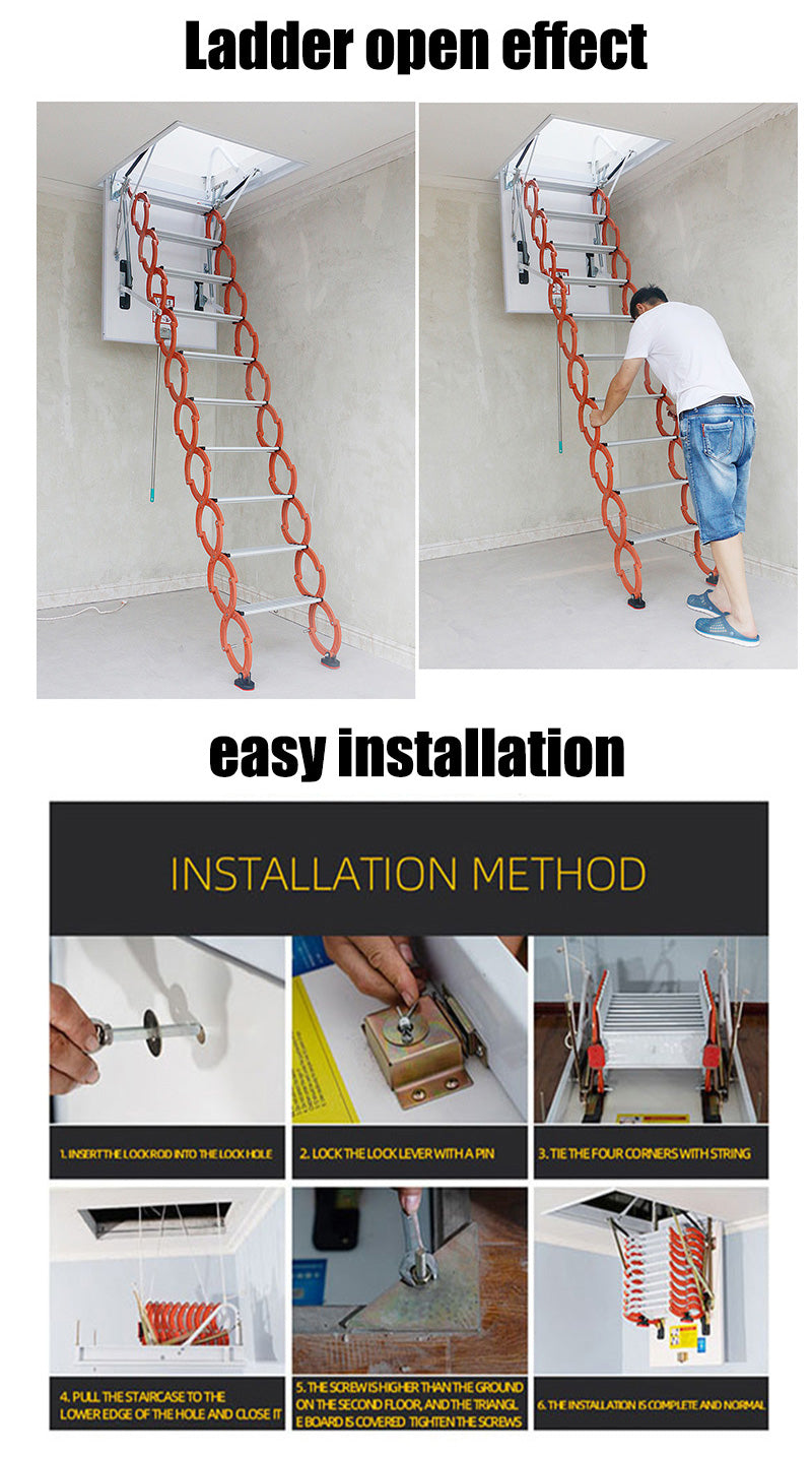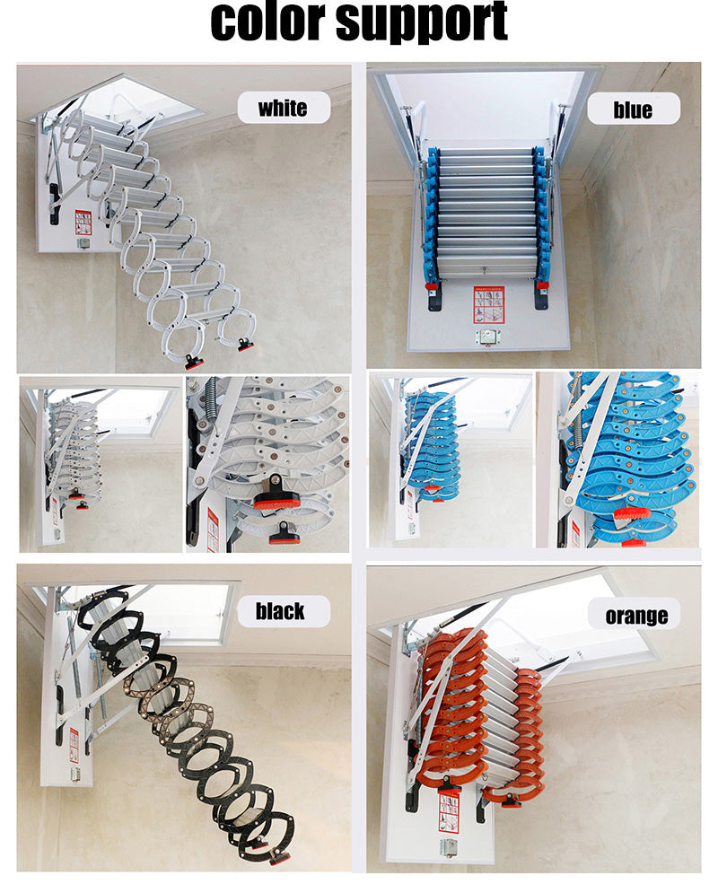 Folding Loft ladder Kit Pull Down attic Stairs With Handrails Roof hinge ladder