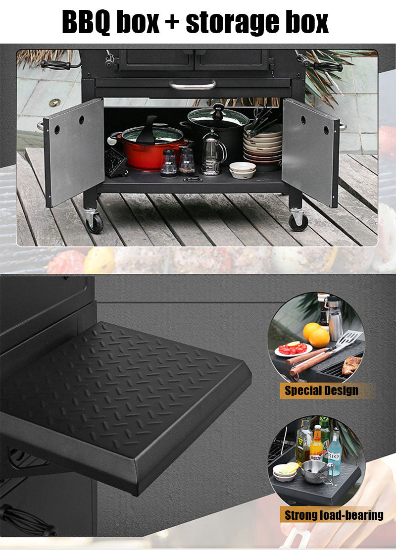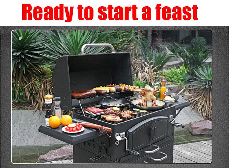 BBQ cart Courtyard oven outdoor charcoal grill detachable large oven temperature control